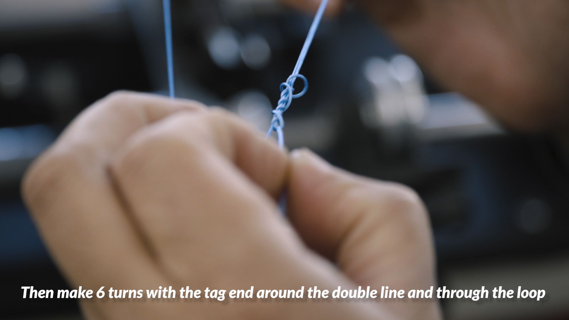There are two ways to connect the snap swivel to the line. The first is the classic Bimini Twist. Start off with approximately 4 feet of double line, then separate the two strands making a loop and twist about 30 times. As you are twisting, slide back so you don’t bunch up the twists. Next, anchor the loop and grip on the main line, then bite down on the tag end, compress those twists, and you will see the tag start to wind up. Once you have reached the point where the tag cannot wind anymore, separate the two lines, do a half hitch on one and a half hitch on the other.